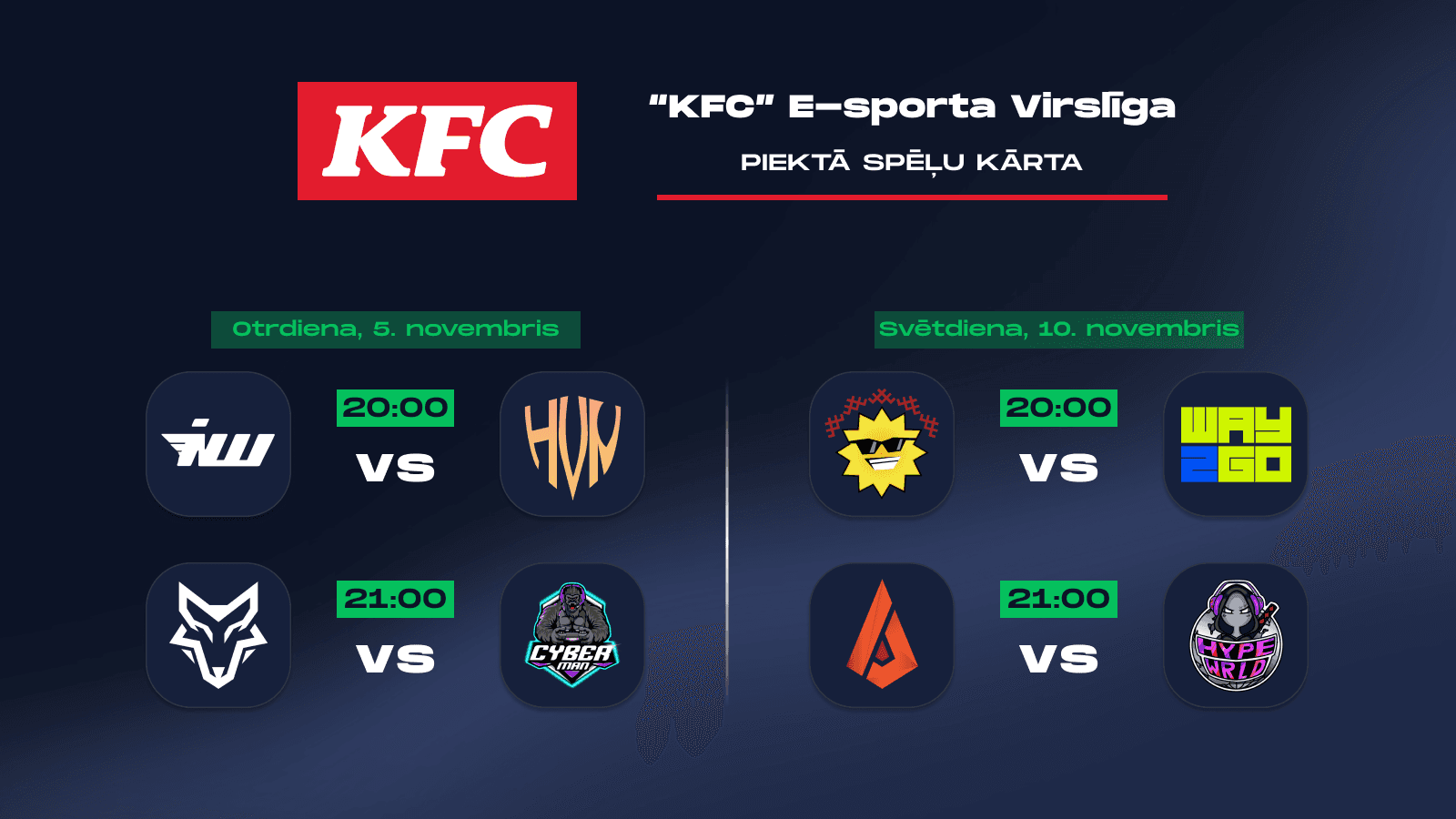 "KFC" E-sporta Virslīga atgriežas ar piekto spēļu kārtu. Zemāk šīs nedēļas grafiks!