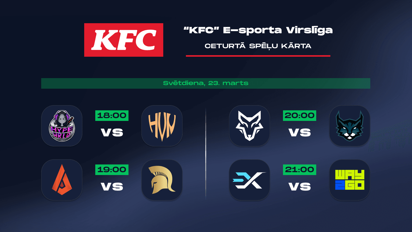 "KFC" E-sporta Virslīgas ceturtā sezona turpinās 23. martā ar ceturto spēļu kārtu