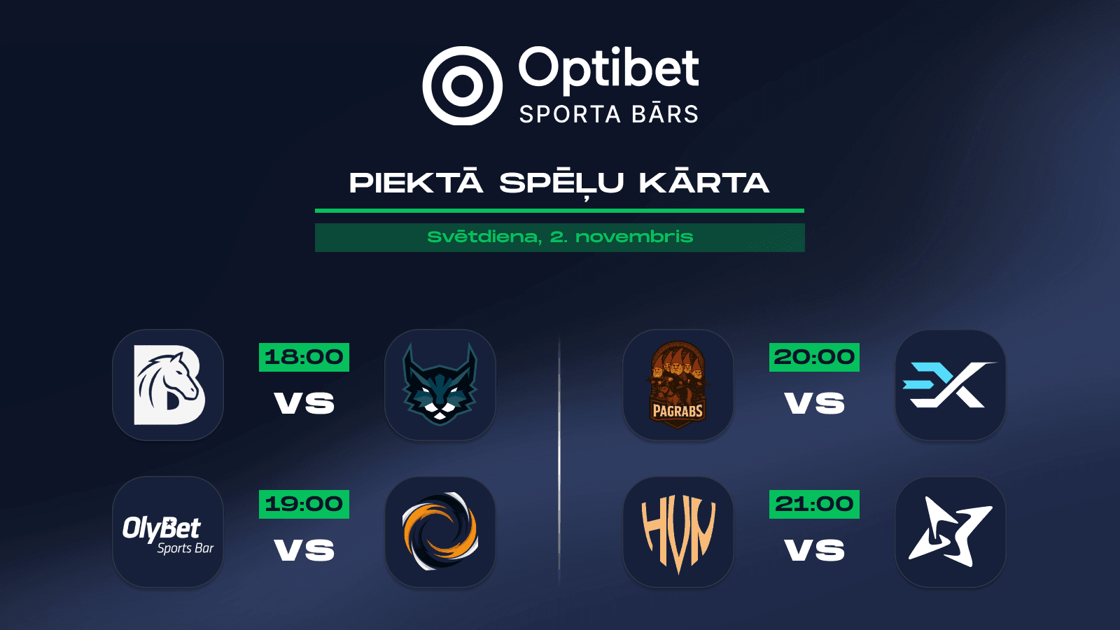 - 19:00 - “OlyBet SB” pret “EVOLUPE"