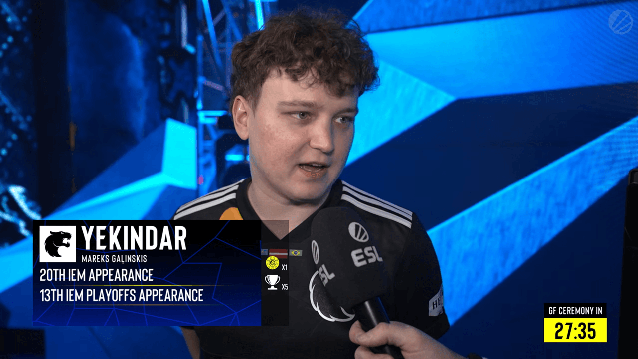 Latvijas e-sportists Mareks "YEKINDAR" Gaļinskis kopā ar Brazīlijas komandu "FURIA" svētdienas vakarā turnīra "IEM Krakow" finālā ar rezultātu 1-3 piekāpās pasaules ranga līderei "Vitality".